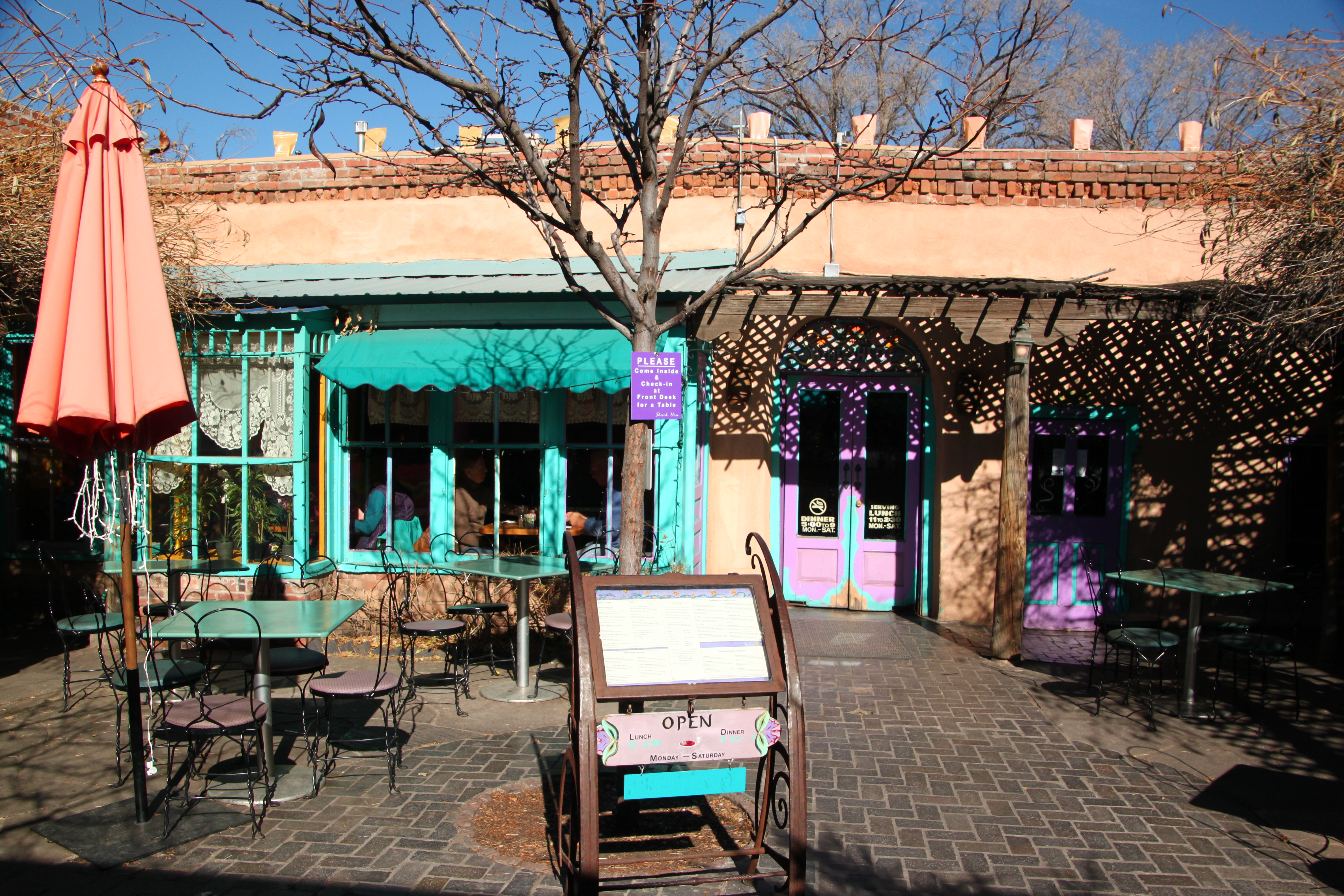 I loved the Mexican influence on the architecture in the two New Mexican cities of Albuquerque and Santa Fe. It felt like we were in a different part of the world. I loved that about traveling in the US, every state is like going to a different country. The scenery, people, culture and food differs greatly and it is so exciting to explore. Stay tuned for the remainder of the trip in blog posts over the next few weeks ๐Ÿ™‚ In Albuquerque we watched a magic show at the KiMo, an absolutely gorgeous Pueblo Deco theatre from the 1920’s and explored the old town and the Albuquerque Art Museum (free on some days). Santa Fe is cute and quirky, with many small shops, galleries and churches. It was just a lovely place to wander around and check out the colourful detailing around windows and doors. Trying the New Mexican chile is a must! It bears no resemblance to the Texan ‘chili’ and is either Green or Red. The only difference is that the red chile is simply a ripened green chile! This changes the flavour, but the hottness doesn’t have to do with the colour, it can vary from restaurant to restaurant. We visited this fantastic restaurant called The Shed in Santa Fe that was absolutely buzzing and it was only 11am! And the food was to die for! IMG_3531 IMG_3489 IMG_3484